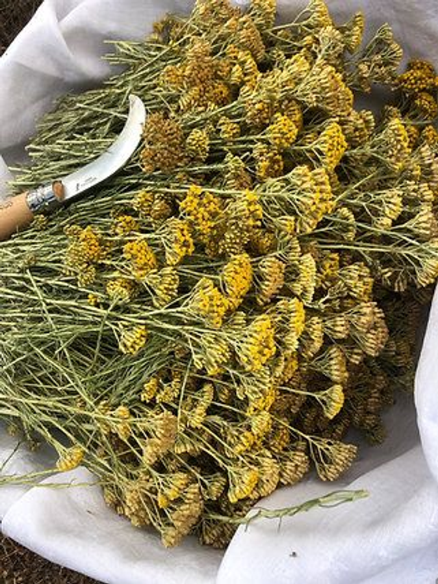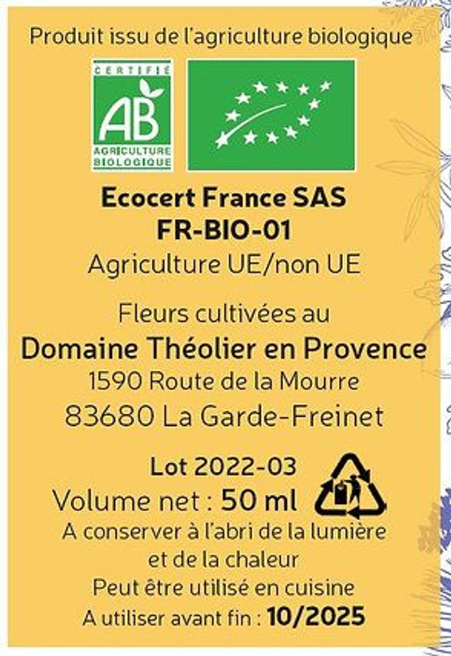 Fleurs fraîches d’immortelles, cueillies à la main, macérées et solarisées au champ dans de l’huile végétale certifiée biologique, puis extraites par filtration.