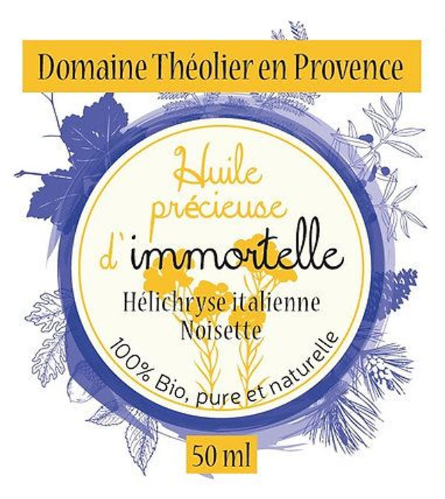 Huile précieuse d'immortelle obtenue à partir d'huile végétale de Noisette