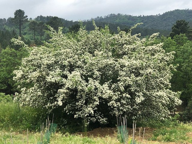 Fleurs fraîches d'Aubépine, cueillies à la main sur le domaine, macérées et solarisées dans de l’huile végétale certifiée biologique, puis extraites par filtration.