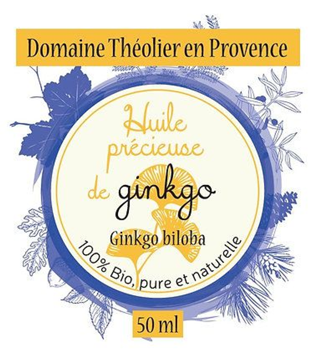Obtenue à partir de feuilles fraîches de Ginkgo, cueillies à la main sur le domaine, macérées et solarisées dans de l’huile végétale certifiée biologique. L'huile est enrichie d'huile essentielle d'hélichryse italienne produite au domaine.