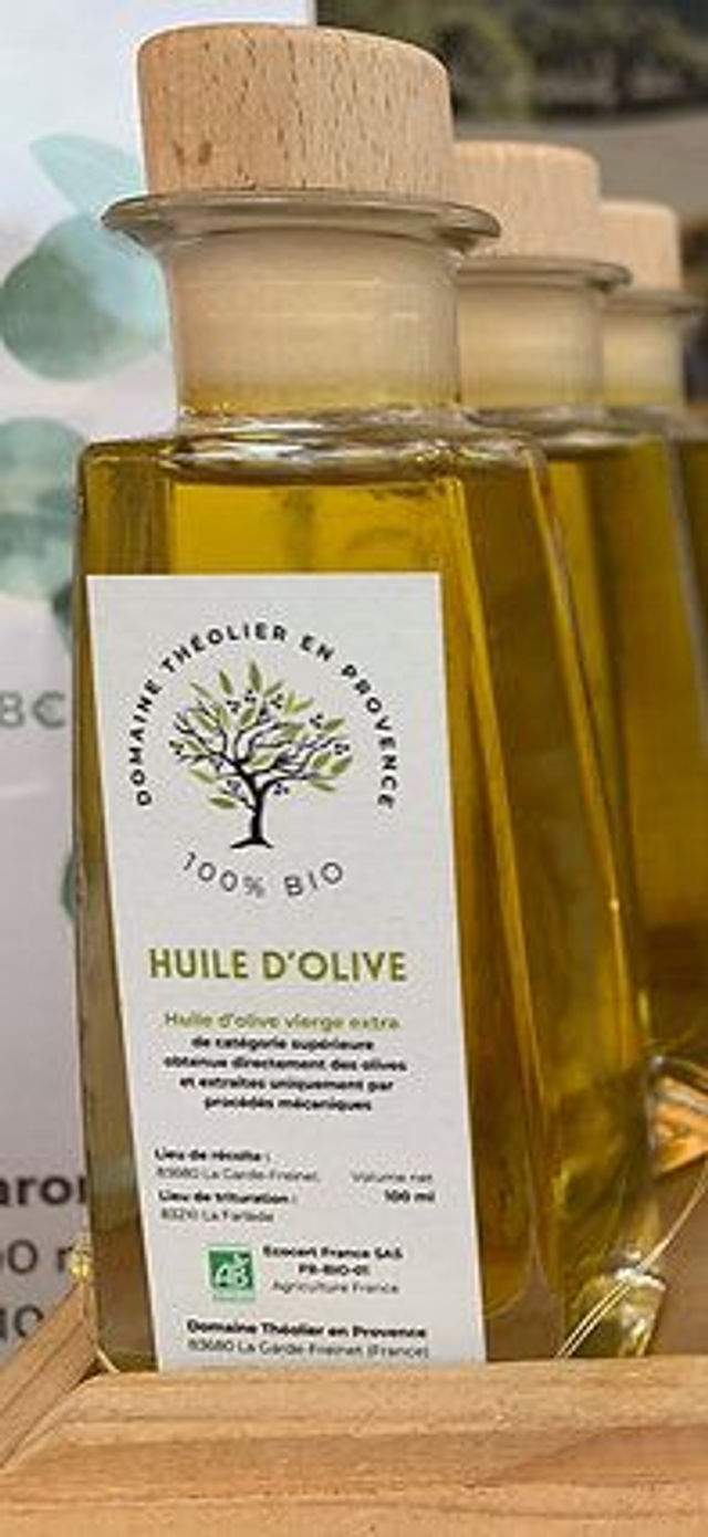 Les olives du Domaine sont cueillies à la main et sans aucun traitement, dans le respect de l'agriculture biologique. Elles sont ensuite pressées au Moulin à Huile à la Farlède (83210) par procédé mécanique uniquement.